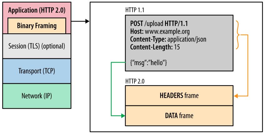 - R/R multiplexing is possible in HTTP/2 due to a new layer called binary framing, which encapsulates and encodes the data for further security
