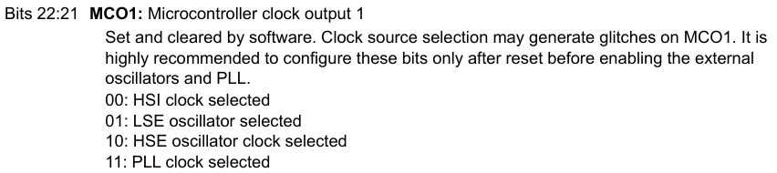 - To select HSI, we should ensure that it is selected in the MCO1 clock configuration register, but making sure those