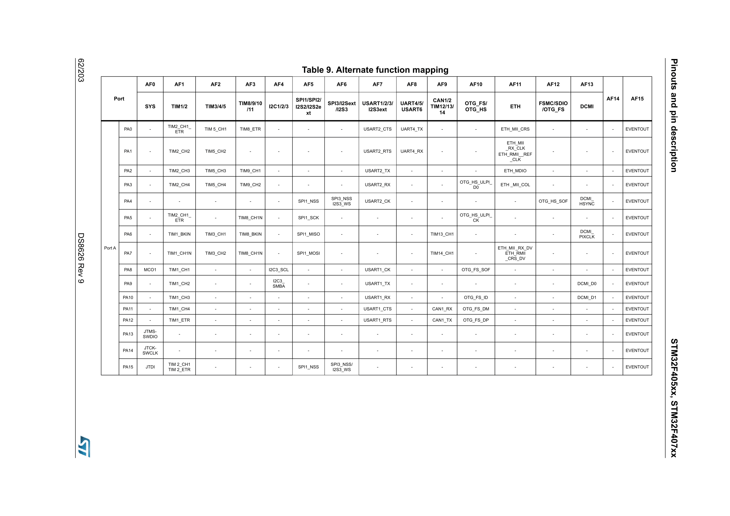 - Examine the alternate function mapping table: