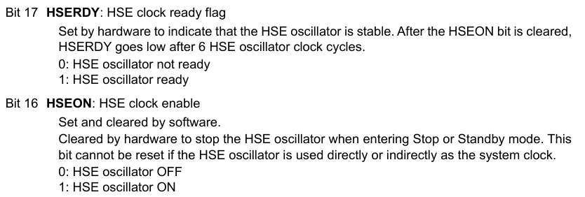 HSEONbit in theRCC_CRregister; we need to turn the 16th bit to 1.
